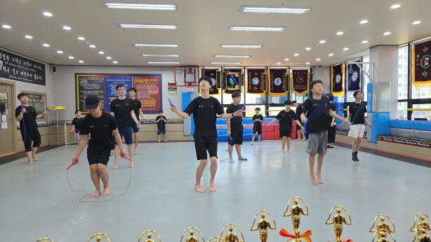지난 23일(토) 오전 10시 대구 북구 수룡관 유림합기스쿨(매전로 78 대성빌딩 3층)에서 어깨동무아동청소년심리센터(센터장 안정환)의 발달 장애우 30여명과 선생님들이 모여 합기도 수룡관(관장 최대민)을 통해 그 동안 배웠던 줄넘기 솜씨를 발표하였다.이번 행사는 최대민 관장의 장애우에 대한 작은 관심으로 비롯하여 시작되