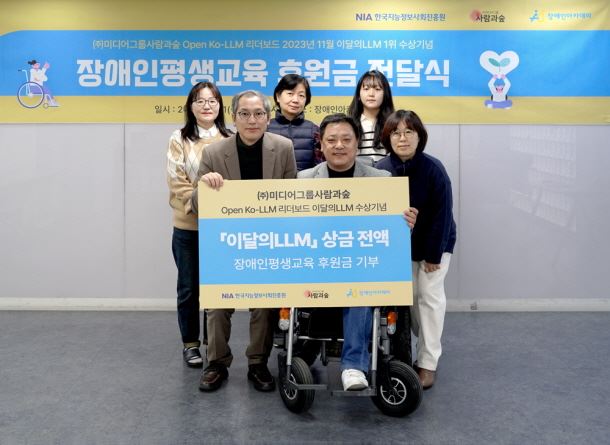미디어그룹 사람과 숲(대표 한윤기, 이하 사람과숲)이 한국지능정보사회진흥원과 업스테이지가 공동주관하는 Open ko-LLM 리더보드 1위 상금 전액을 사단법인 장애인아카데미에 후원했다.