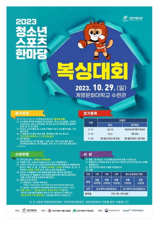 “2023년 복싱청소년스포츠한마당”이 지난해 10월 29일(일) 계명대학교 수련관에서 열렸다.