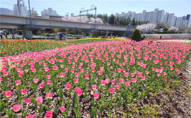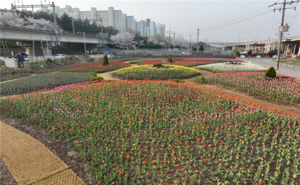 부산시 낙동강관리본부(이하 본부)는 내일(16일)부터 화명생태공원 내 꽃단지(P1 주차장 맞은편)에서 7만 송이 규모의 화려한 튤립 군단을 만나볼 수 있다고 밝혔다.