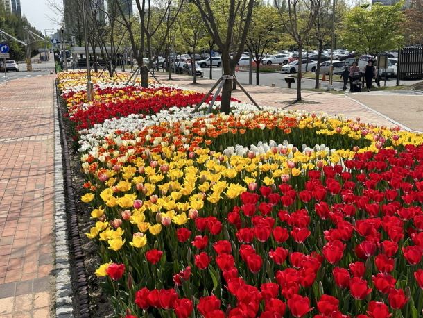 시민들이 가장 많이 찾는 봄철을 맞아 튤립을 주제로 조성된 화단은 다채로운 색감의 튤립과 강렬한 향기의 히야신스가 방문객들이 발길을 붙잡아 대표적인 포토존으로 자리 잡았다.