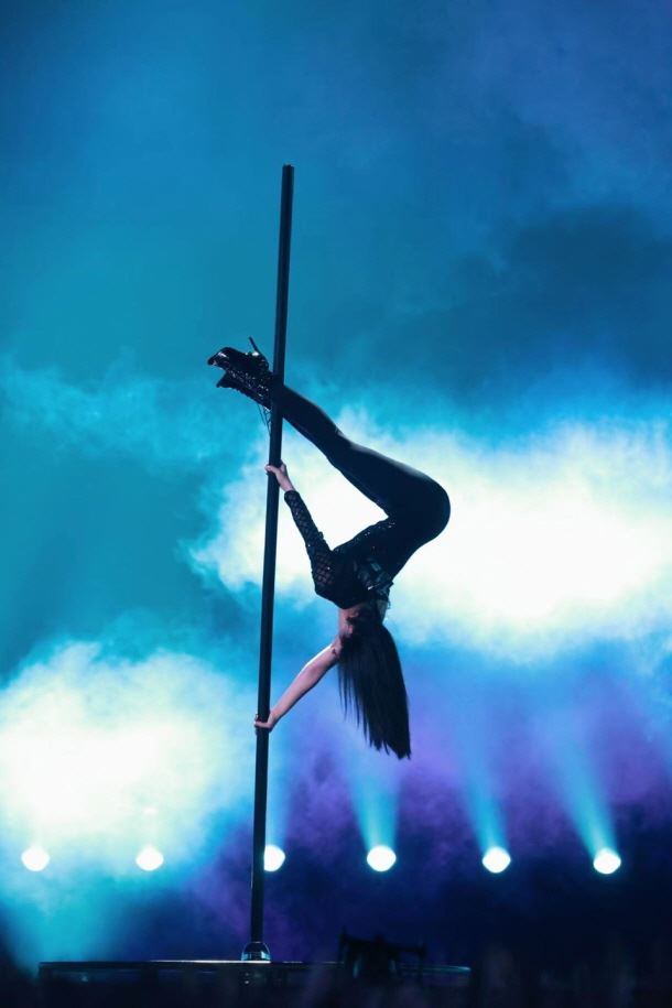 중국 유명배우 자오이환이 '승풍2024'에서 스틸폴댄스를 선보이고 있다.
