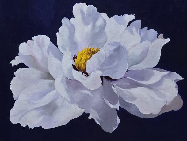 이번 전시에는 복스럽고 탐스러운 모란과 해바라기, 장미 등 꽃을 테마로 제작된 구상 작품을 공개하여 꽃을 그리는 작가의 정체성을 확연하게 드러냈다. 활짝 핀 꽃송이로 인생에서 맞이하는 환희의 순간을 추억하고 밝음으로 가득한 인생이 펼쳐지길 바라는 간절함도 담았다.