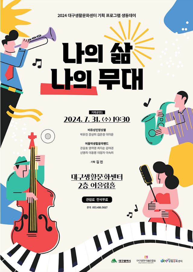 대구문화예술진흥원 대구생활문화센터는 <2024 생동데이> 1회차 기획공연 “나의 삶, 나의 무대”를 오는 7월 31일(수) 19시 30분에 대구생활문화센터 2층 어울림홀에서 열였다.