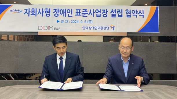디딤이앤에프는 이번 협약을 통해 자회사형 장애인표준사업장을 적극 활용하고, 장애인에게 적합한 다양한 직무를 개발해 포용적이고 지속 가능한 일자리 창출에 기여할 예정이다.