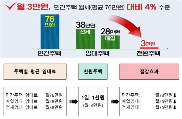 신청서는 3월 6일부터 14일까지 접수받을 예정이다. 이번에 공급되는 천원주택(매입임대주택)은 총 500호로, 예비 입주자 모집 인원은 500호의 두 배인 1,000명을 선발한다.